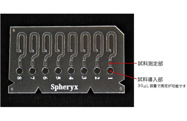 試料の測定は、マイクロ流体力学を応用し、独自に設計された使い捨てセルxCellを用いて行います。xCellは8検体の試料測定に対応します。