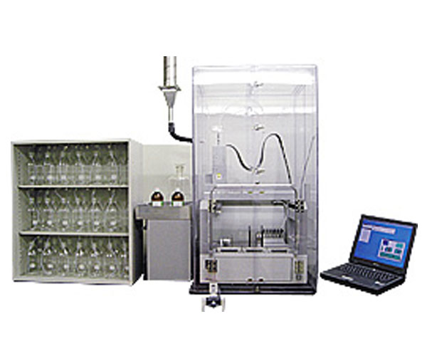 水中に含まれる残留農薬や絶縁油中PCB分析の前処理、有機化合物の固相抽出処理フロー(カラムコンディショニング・サンプルロード・洗浄・乾燥・溶出・濃縮)を最大40検体まで(40Eの場合)自動化した固相抽出装置です。